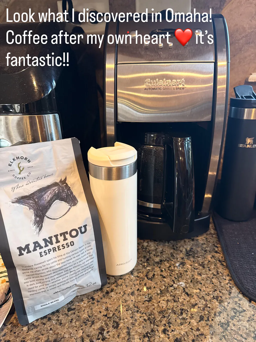 Let us tell you the legend of a horse named Manitou. Theodore Roosevelt spent his time at the Elkhorn Ranch in the Badlands caring for his cattle and hunting various types of wild game. He often wrote about the best horse he ever had, a horse named Manitou, who accompanied him on many hunts and cattle drives. Roosevelt described Manitou as a dark horse that was bold, strong, and dependable. Just like Manitou, our espresso is dark, bold, strong, and dependable, giving you the boost you need for your day-whether you're chasing elk, casting lines, herding cattle, or simply seeking an extra pick-me-up from an espresso that is sweet and syrupy, sure to please everyone.